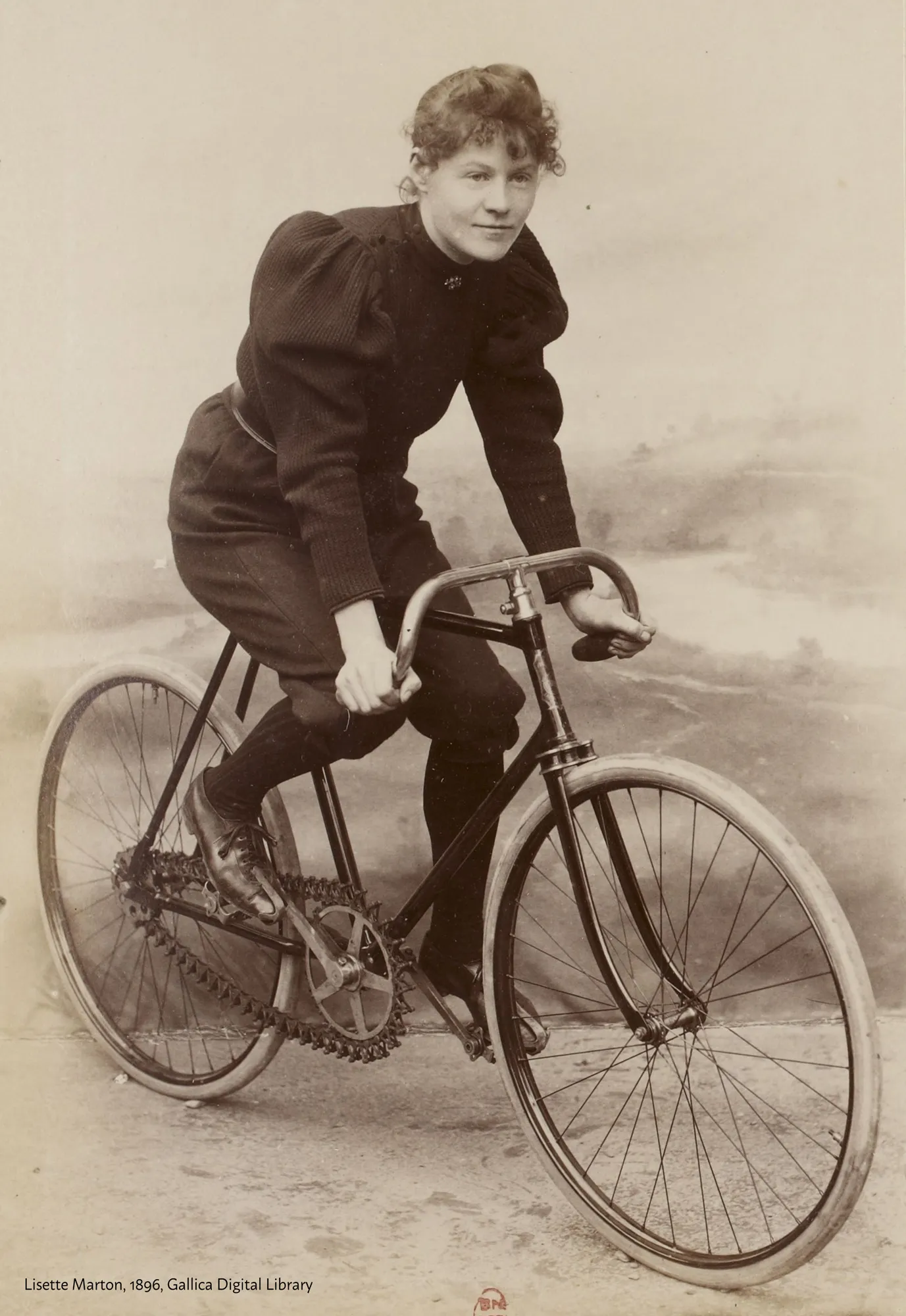 En Belgique, aux États-Unis, ou dans l’Angleterre victorienne, des écrits et archives témoignent de l’importance qu’a pris cet objet, non seulement pour la mobilité des femmes mais également dans l’évolution de leurs tenues 6. Effectivement, les tenues conventionnelles de l’époque (de très longues et lourdes jupes, des corsages contraignants et des chapeaux extravagants) sont tout sauf adaptées au mouvement et encore moins à la pratique du vélo. Faisant fi des conventions sociales, certaines femmes commencent à adopter d’autres tenues : apparait alors le Bloomer, un pantalon bouffant qui est bien plus pratique pour pédaler. Raillé et moqué, ce dernier finit toutefois par s’imposer et être toléré tant que la femme se promène un vélo à la main…7